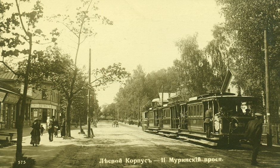 1-й Муринский пр. Вид от нынешней фабрики Азарт в сторону ж/д моста. 30-е годы